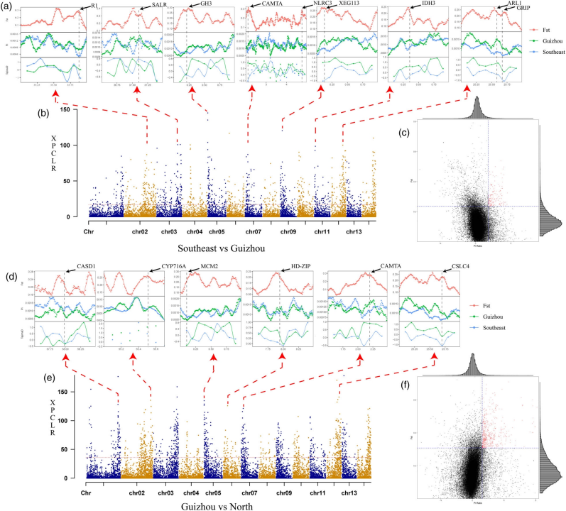 揭示關(guān)鍵適應(yīng)性基因:在貴州和華北群體中,研究檢測(cè)到與干旱、寒冷和病害抗性相關(guān)的選擇信號(hào)基因(如CYP716A, CAMTA,HD-ZIP等),解釋了不同地區(qū)無(wú)患子群體的環(huán)境適應(yīng)能力差異。