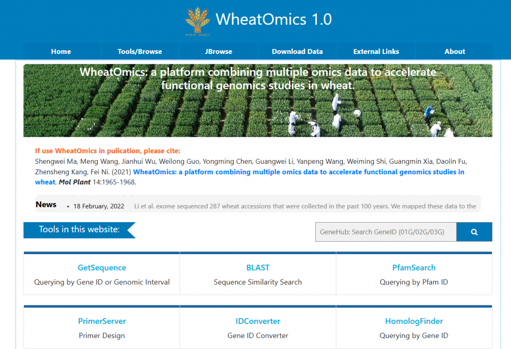 ☆?小麥基因組信息數(shù)據(jù)庫(kù):由國(guó)際小麥基因組測(cè)序聯(lián)盟維護(hù)(IWGSC),可查找參考基因組序列、基因,BLAST,批量注釋等多個(gè)功能,可幫助科研工作者加速開發(fā)改良品種,為小麥基礎(chǔ)應(yīng)用科學(xué)提供支持。