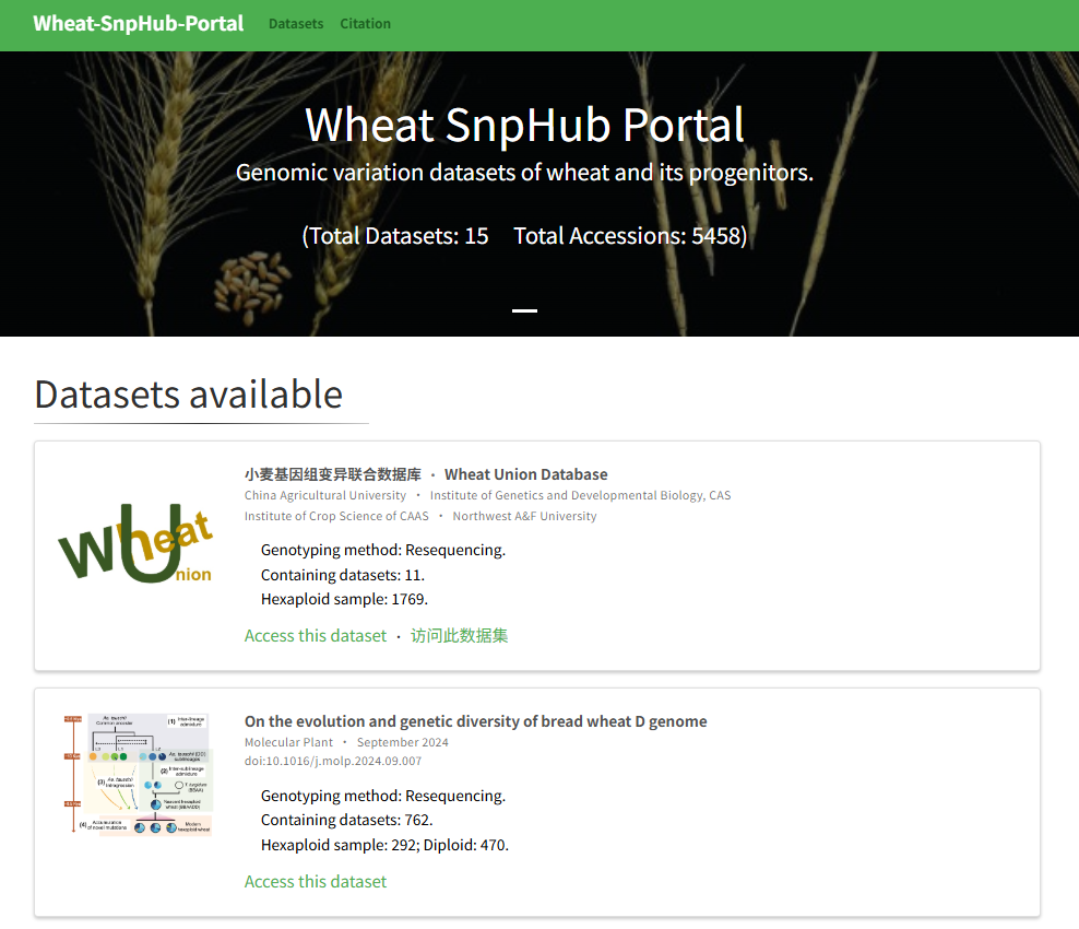 ☆?小麥及其祖先的基因組變異數(shù)據(jù)庫(kù):適用于多套小麥及祖先種變異數(shù)據(jù)集的查詢,可對(duì)大規(guī)模樣本的VCF文件實(shí)現(xiàn)在線的快速檢索和分析可視化。