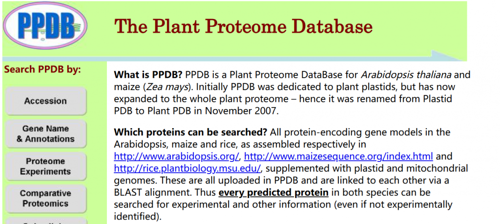 ☆?擬南芥和玉米蛋白質(zhì)組數(shù)據(jù)庫(kù):為通過實(shí)驗(yàn)鑒定擬南芥和玉米中的蛋白質(zhì)提供了集成資源。內(nèi)部BLAST比對(duì)鏈接玉米和擬南芥信息,實(shí)驗(yàn)鑒定基于細(xì)胞類型特異性蛋白質(zhì)組或特定亞細(xì)胞蛋白質(zhì)組(例如葉綠體,類囊體,核苷)和總?cè)~蛋白質(zhì)組樣品的內(nèi)部質(zhì)譜(MS)。