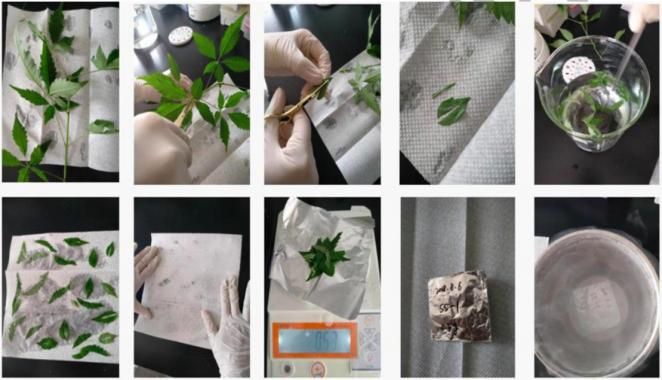 7)葉片剪下后的稱量等操作,請在 10min 內(nèi)完成,時間過長會導(dǎo)致葉片失水不可用,部分地區(qū)氣溫較高失水更快,操作時間需更短