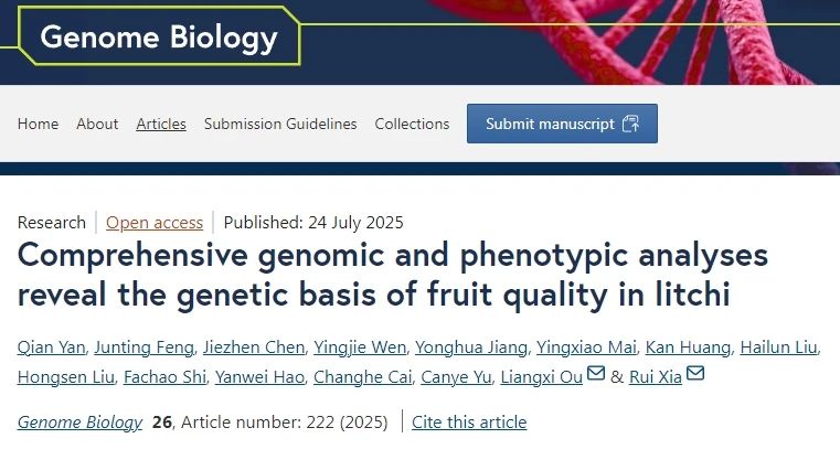 近日,廣東省農業(yè)科學院果樹研究所荔枝種質資源與育種團隊聯(lián)合華南農業(yè)大學園藝學院夏瑞教授團隊和中國熱帶農業(yè)科學院熱帶生物技術研究所馮筠庭副研究員在國際知名期刊《Genome Biology》上發(fā)表了研究論文。題為“Comprehensive genomic and phenotypic analyses reveal the genetic basis of fruit quality in litchi”。百邁客生物為該研究提供了二代建庫測序服務。