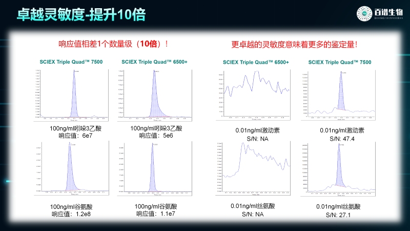 2025年9月17日,百邁客生物與百譜生物聯(lián)合發(fā)布“植物廣靶定量代謝組學技術” 。該技術采用?AB SCIEX QTRAP7500?高靈敏度檢測平臺,將檢測限降低一個數(shù)量級,相較于傳統(tǒng)?SCIEX Triple Quad? 6500 +?平臺,對低豐度植物代謝物、特殊滲透調節(jié)物質等低含量成分的檢測能力顯著提升。為深入研究植物生理機制提供更多可能。>>詳情