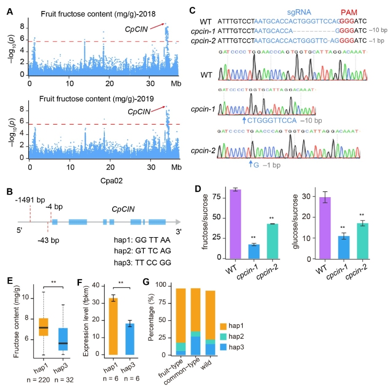 圖2.?CpCIN啟動(dòng)子變異調(diào)控番木瓜果實(shí)果糖含量