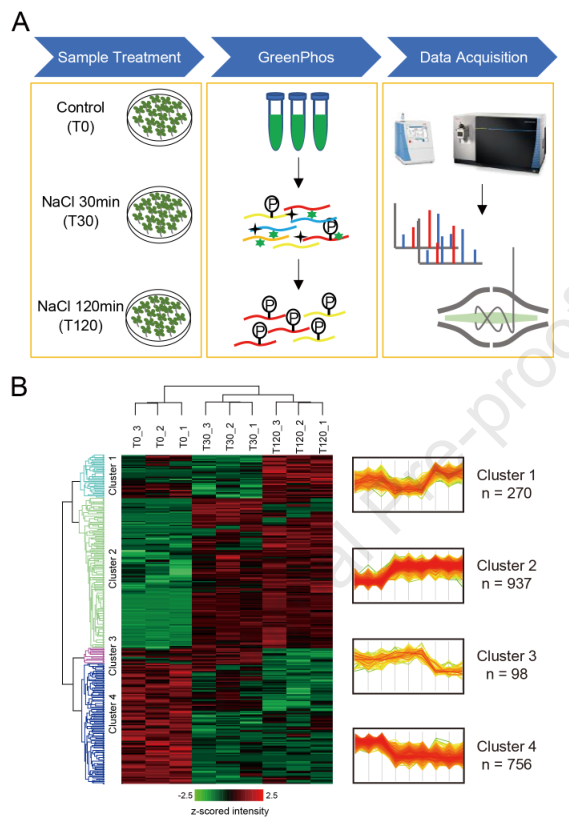 4.?利用GreenPhos對擬南芥鹽脅迫誘導(dǎo)的磷酸化蛋白組分析