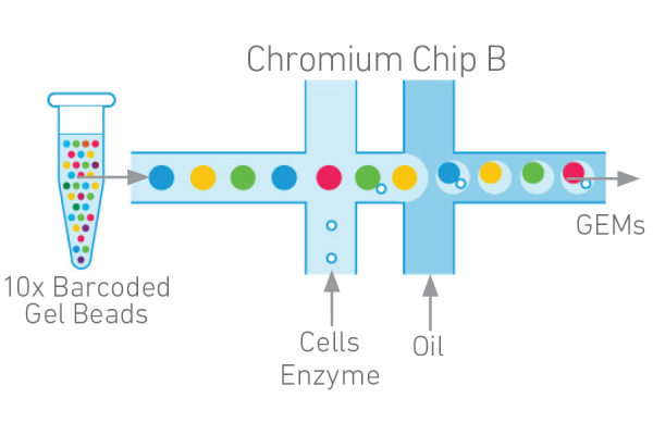10 X Genomics單細胞轉錄組測序平臺利用微流控、油滴包裹和Barcode標記等技術來實現高通量的細胞捕獲技術,能夠一次性分離、并標記500–10000個單細胞,從而獲得每個細胞的3’端的轉錄組信息。具有細胞通量高、建庫成本低、捕獲周期短等優(yōu)勢。該技術主要用于細胞分型和標記因子的鑒定,從而實現對細胞群體的劃分與細胞群體間基因表達差異的檢測,此外該技術還可以預測細胞分化與研究發(fā)育軌跡,在當下疾病、免疫、腫瘤領域以及組織、器官、發(fā)育研究中發(fā)揮越來越重要的作用。
