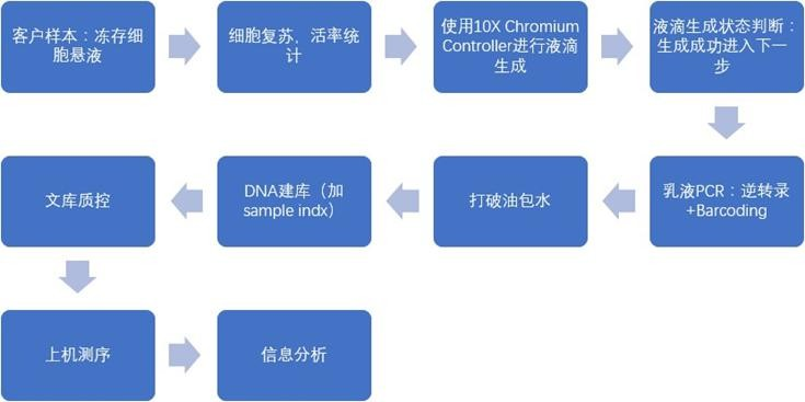 單細胞測序平臺系統(tǒng)集成:細胞分離捕獲,微流控芯片擴增,數據分析。解決單細胞測序兩大難點:單細胞分離捕獲,極低量 RNA 反轉錄擴增。整體的項目流程從樣品接收到項 目交付如下圖: