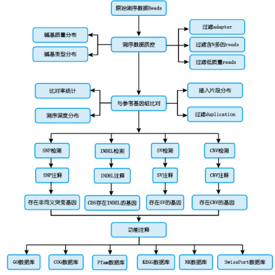 全基因組重測序(whole genome sequencing,WGS)對全基因組進行測序掃描,能在全基因組范圍之內(nèi)解讀所有常見和稀有變異信息,全面檢測單核苷酸多態(tài)位點(Single Nucleotide Polymorphisms, SNP)、插入缺失位點(Insertion Deletion, InDel)、結(jié)構(gòu)變異(Structure Variation,SV)以及拷貝數(shù)變異(Copy Number Variation, CNV)。